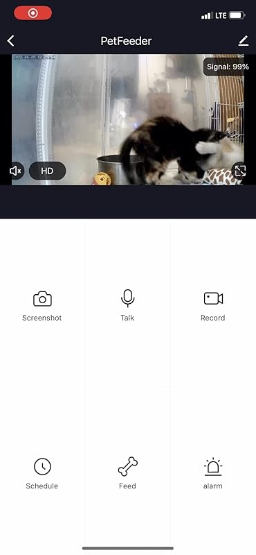 I love this. Easy to download and use. You can watch your cat eat (if you’re away and concerned about it). I took off one star because I wish the camera was angled to the bowl. I can’t see if the food was dispensed or not. But I guess seeing my cat come and eat tells me at least some food was dispensed. The camera records any motion. But watching the recorded videos is hard (they are very slow).