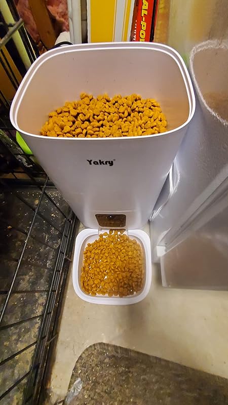 I have dog, but am not staying home. My mother feed the food to dog, but can not make it regularly and same amount.After using the Yakry Model C2 Automatic Pet Feeder, I don’t worry about feeding to my dog, and am watching my dog in my office and communicate with mobile app.I don’t worry about the business trip for several days. My mother is free of feeding stress and is happy to use this automatic pet feeder.My dog is getting familiar to my recording voice in the feeder of being dispensed into the bowl and now comes over to the feeder when she hears it.The feature for the schedules and for the repetitions are very useful for me.I can use it surveillance camera in my office too.I am strongly recommending to you and my friends.