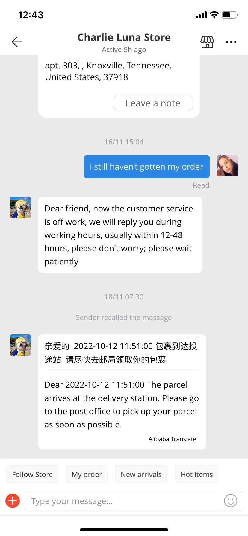 not happy with item