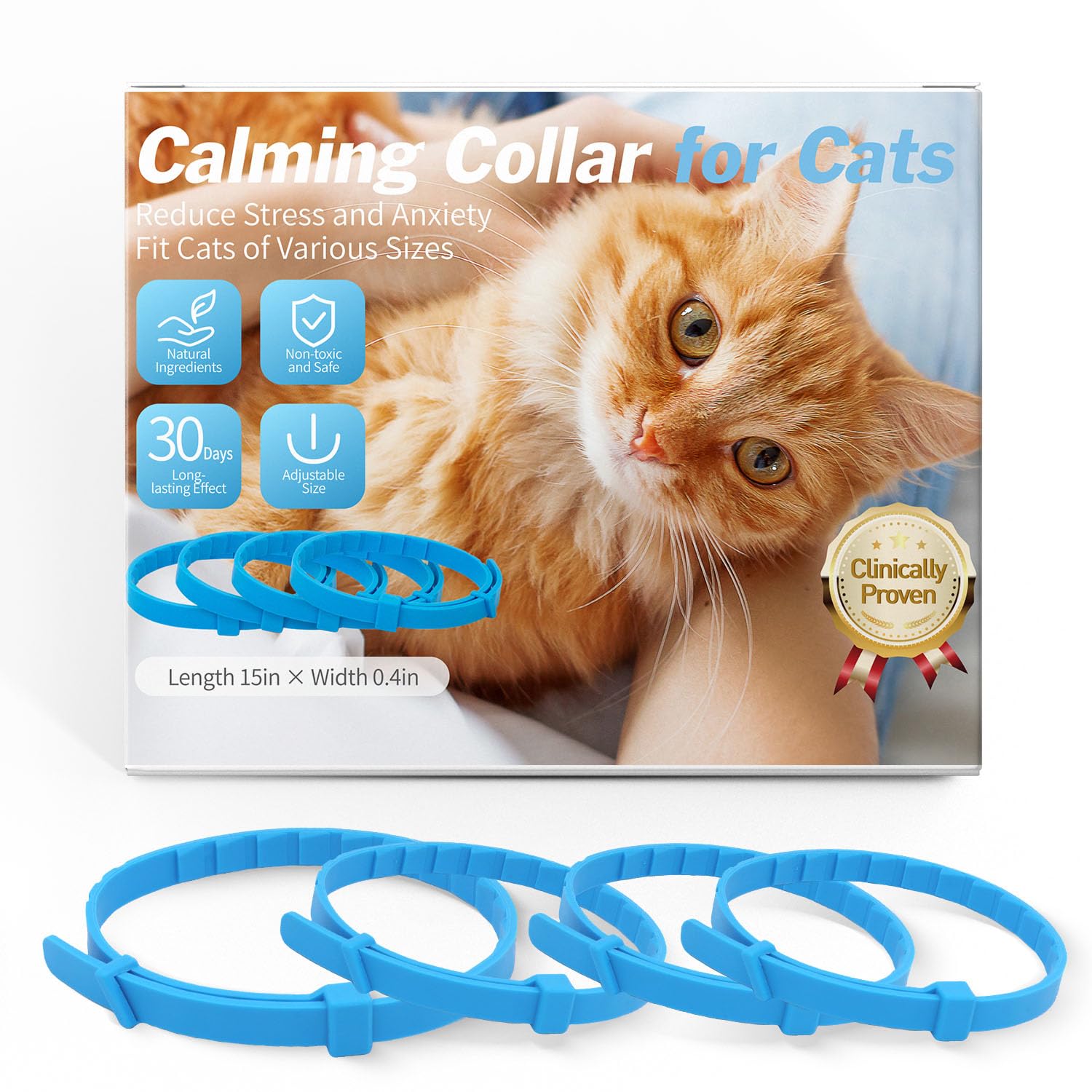 We tried these Duasdne calming collars on our cats and saw good results. The collars fit well on our different-sized cats. We cut the extra length off for our smaller cat. The blue color looks nice and didn’t bother our pets.
